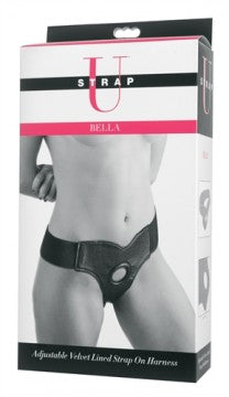 Indulge in your strap on fantasies with this fully adjustable and comfortable strap-on harness from Strap U. With a wide band supportive harness that adjusts via two Velcro straps. You can insert your favorite flared-base dildo into the O ring snap into place and you are ready to start penetrating your partner. The waistband offers total adjustability and will accommodate most sizes. The back supporting straps offers a more form-fitting design that hugs the contours of your body allowing you to move freely without discomfort. Featuring a velvet lining for thr ultimate in comfort. This harness system is easy to maintain making this a comfortable choice for all your strap on adventures.