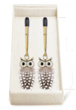 Simply the world’s most beautiful nipple clips, licensed to Icon Brands by Paris’ renowned designers, Atelier Elysee. Shown in actual size on their elegant packaging, they feature exquisite pairings of delicate feathers, ornate beading and rich metallics in combinations as stunning as a Parisian sunset. In “Wise One” the designers chose to recreate the owl, whimsical, quizzical and ever so unforgettable.